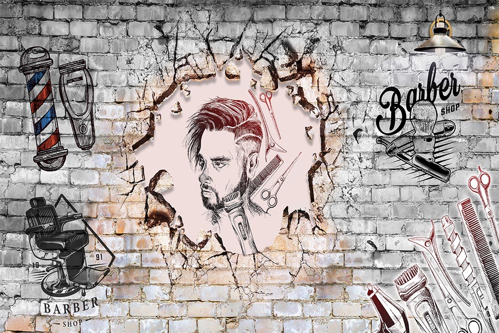 • Kuaför Duvar Kağıdı, Berber Duvar Kağıdı 3 boyutlu şekilde satın alın!
