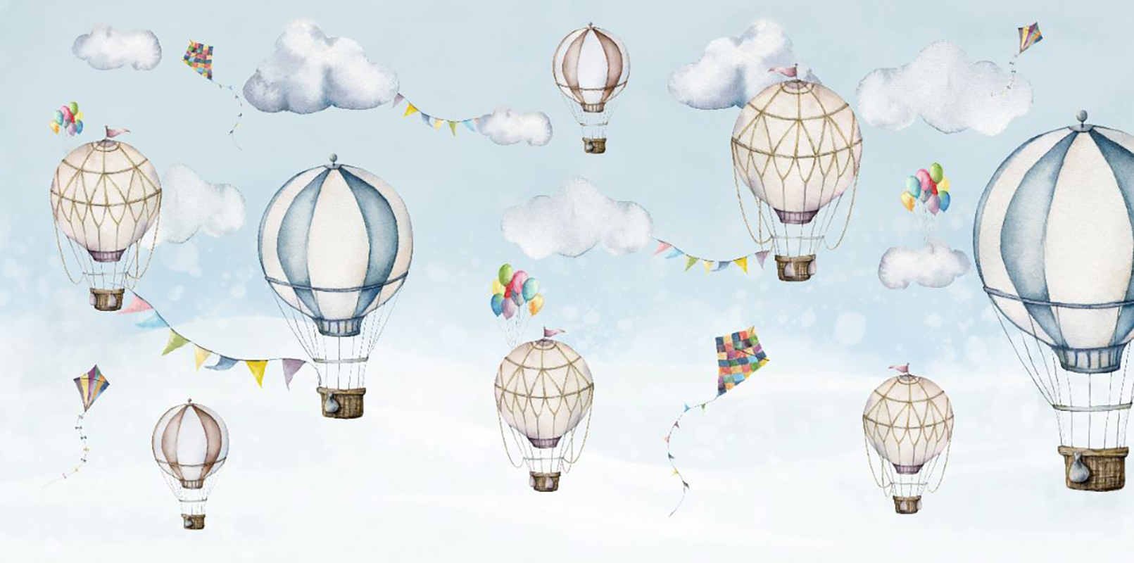• Mavi Gökyüzünde Uçan Balonlar Çocuk Odası Duvar Kağıdı 3 boyutlu şekilde satın alın!