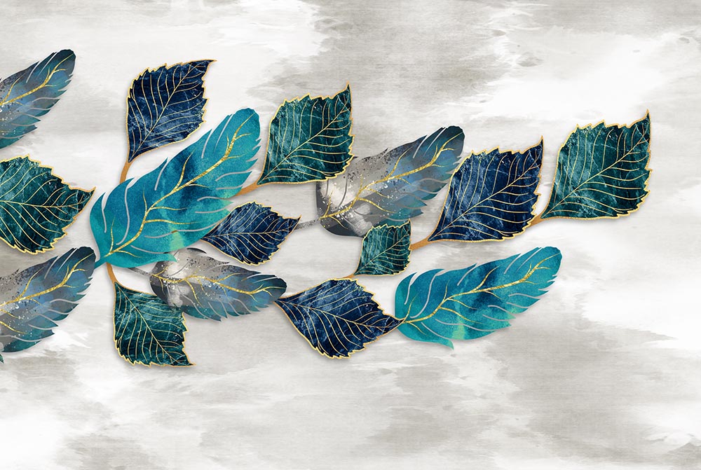 • Mavi - Lacivert Yapraklar Duvar Kağıdı 3 boyutlu şekilde satın alın!