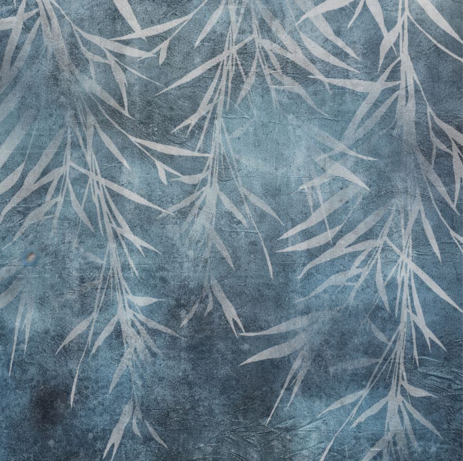 • Mavi Lacivert Zemin üzerinde Gri Beyaz Sarkan Yapraklar Duvar Kağıdı 3 boyutlu şekilde satın alın!