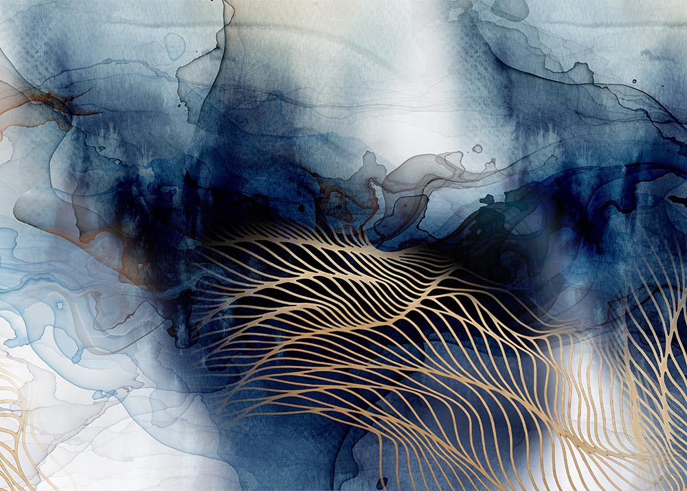 • Mavi ve Gold Tonlarında Geometrik Desen Duvar Kağıdı - 3D Duvar Kağıdı 3 boyutlu şekilde satın alın!