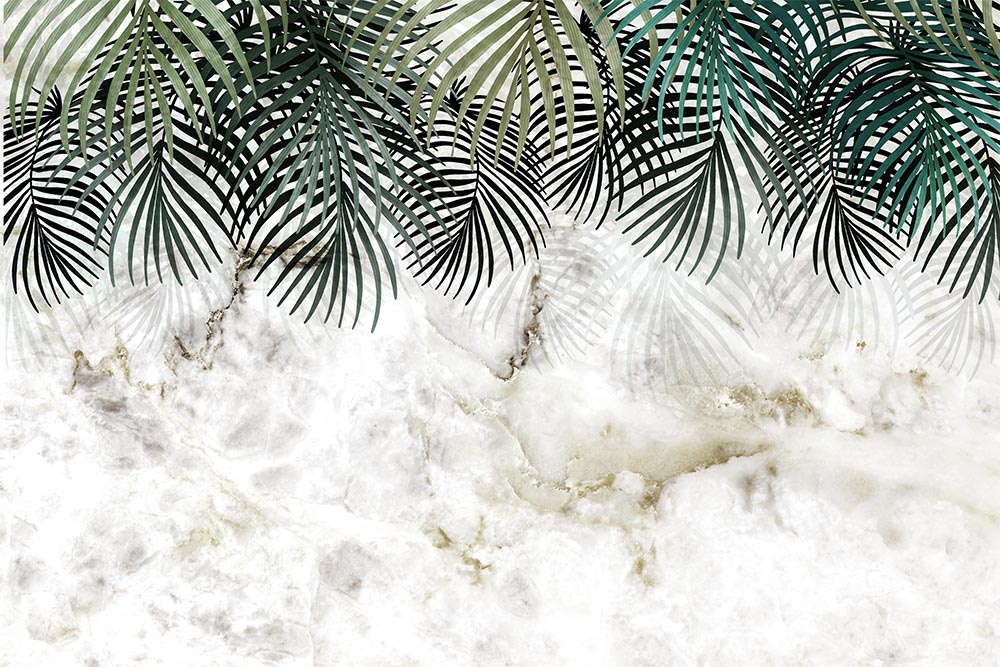 • Mermer Zemin Amazon Yaprakları Tropikal Duvar Kağıdı 3 boyutlu şekilde satın alın!