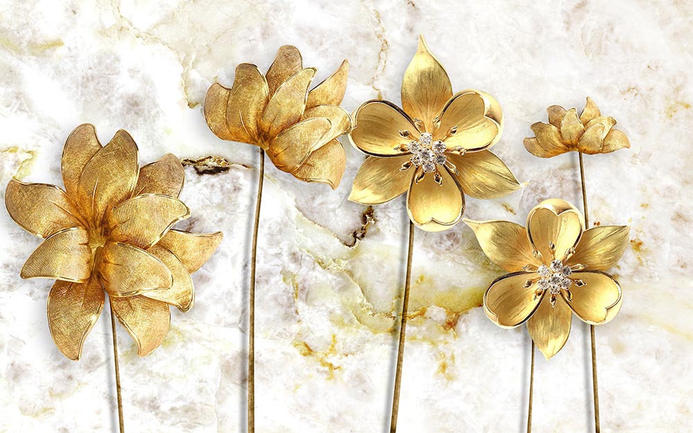 • Mermer Zemin Gold Çiçekler 3D Duvar Kağıdı 3 boyutlu şekilde satın alın!