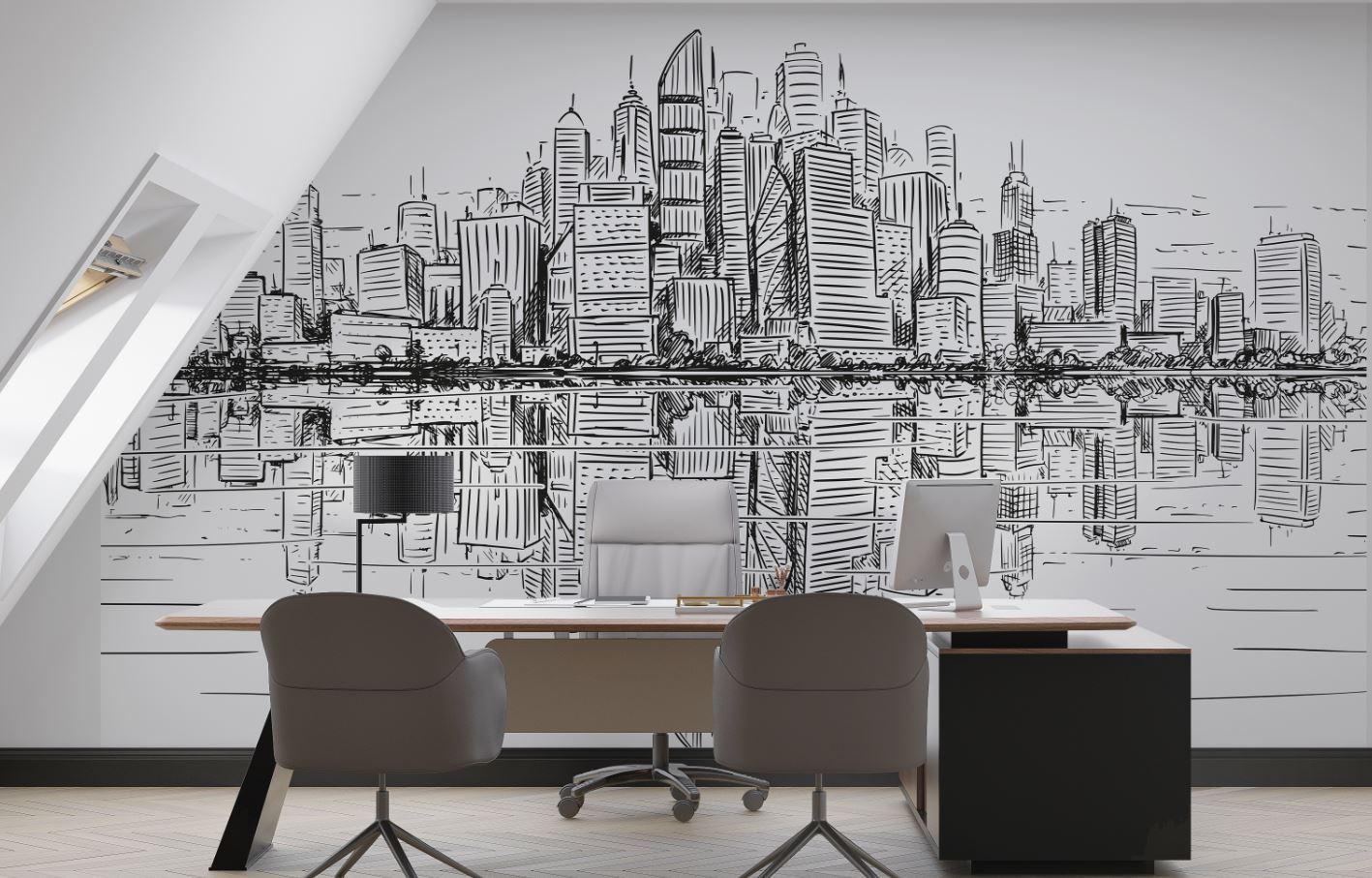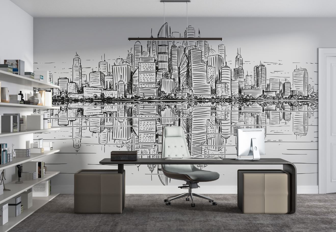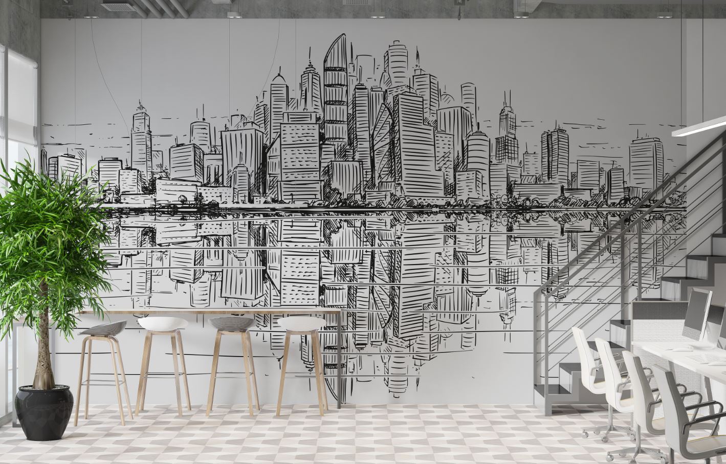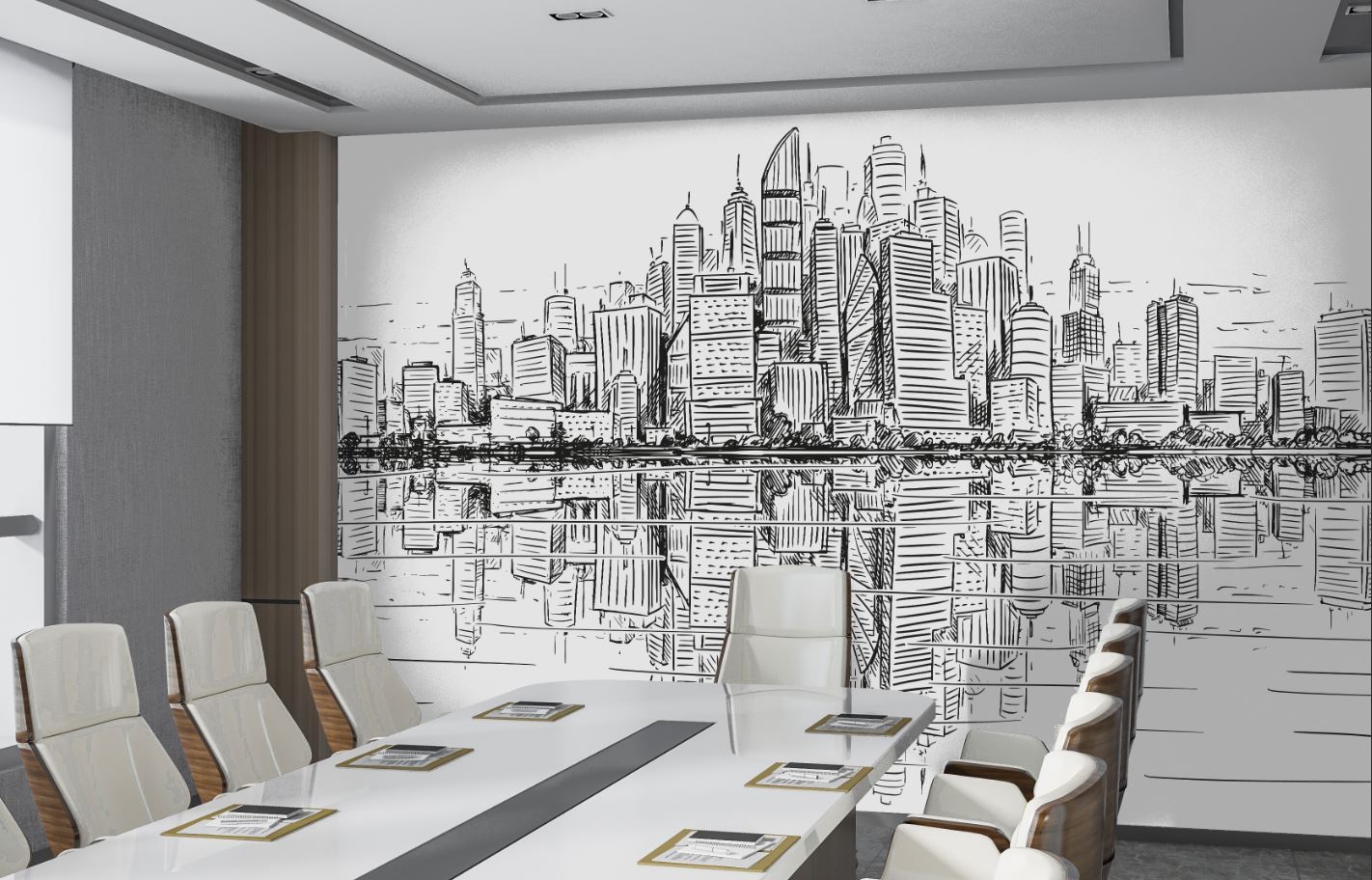 • Mimar ofisi Duvar Kağıdı , Karakalem tarz Binalar 3 boyutlu şekilde satın alın!