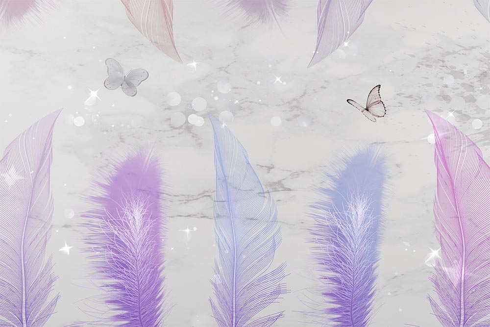 • Mor Pembe Tüyler ve Kelebekler Duvar Kağıdı 3 boyutlu şekilde satın alın!
