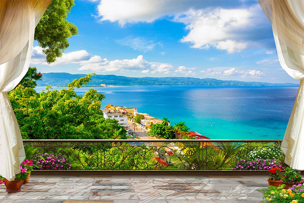 • Muhteşem Balkon Teras Manzarası Duvar Kağıdı 3 boyutlu şekilde satın alın!