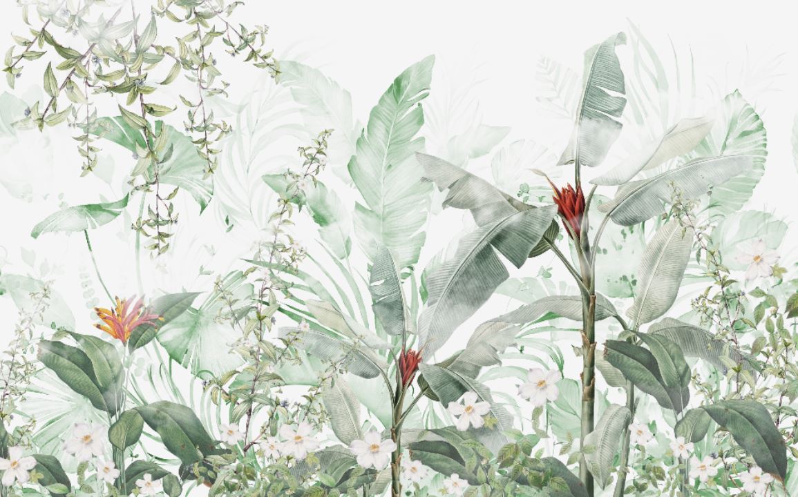 • Muhteşem Muz Ağaçları ve Yaprakları Tropikal Duvar Kağıdı 3 boyutlu şekilde satın alın!