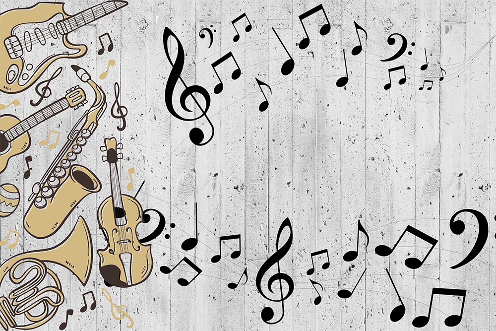 • Müzik Notaları ve Enstrümanlar Duvar Kağıdı 3 boyutlu şekilde satın alın!