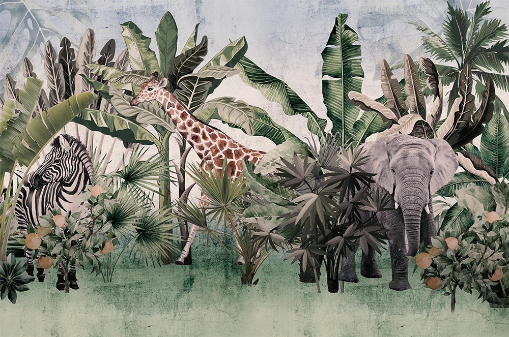 • Ormanda Zürafa Fil Zebra Duvar Kağıdı 3 boyutlu şekilde satın alın!