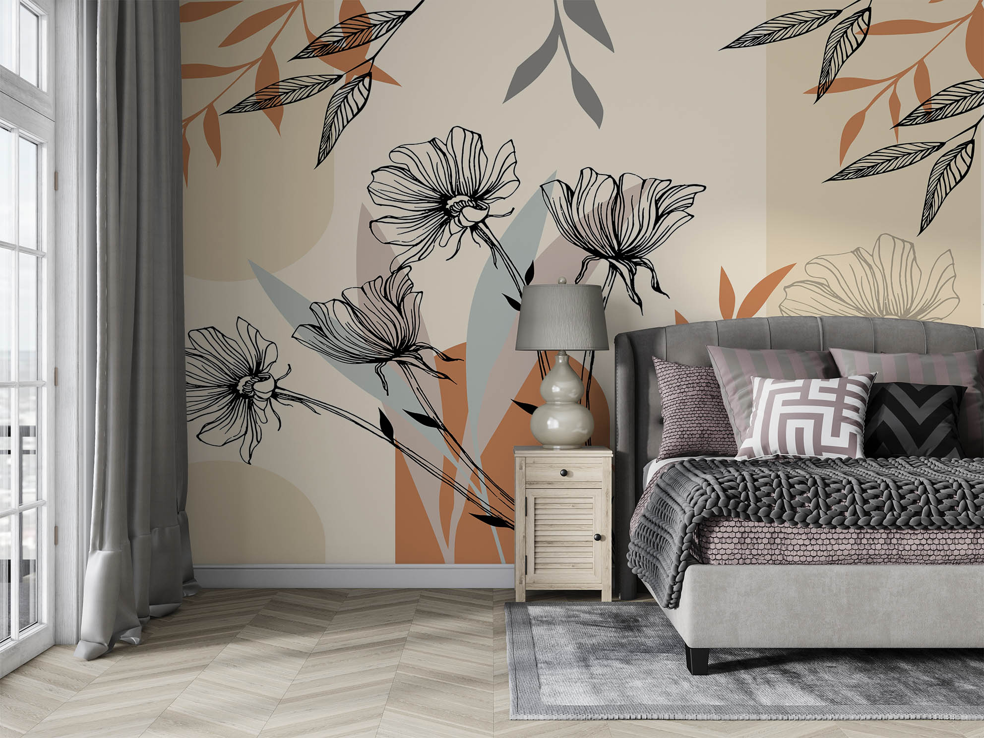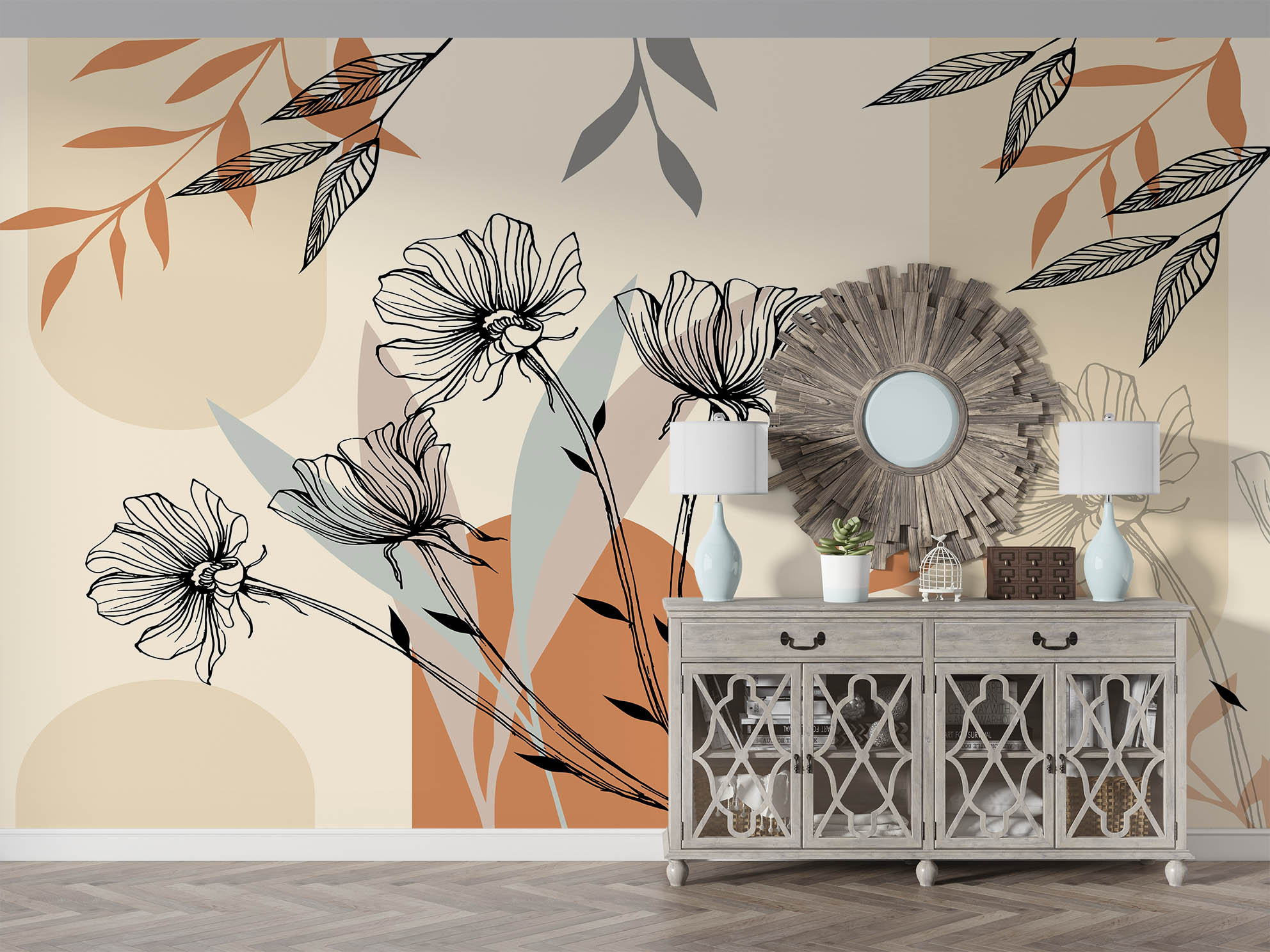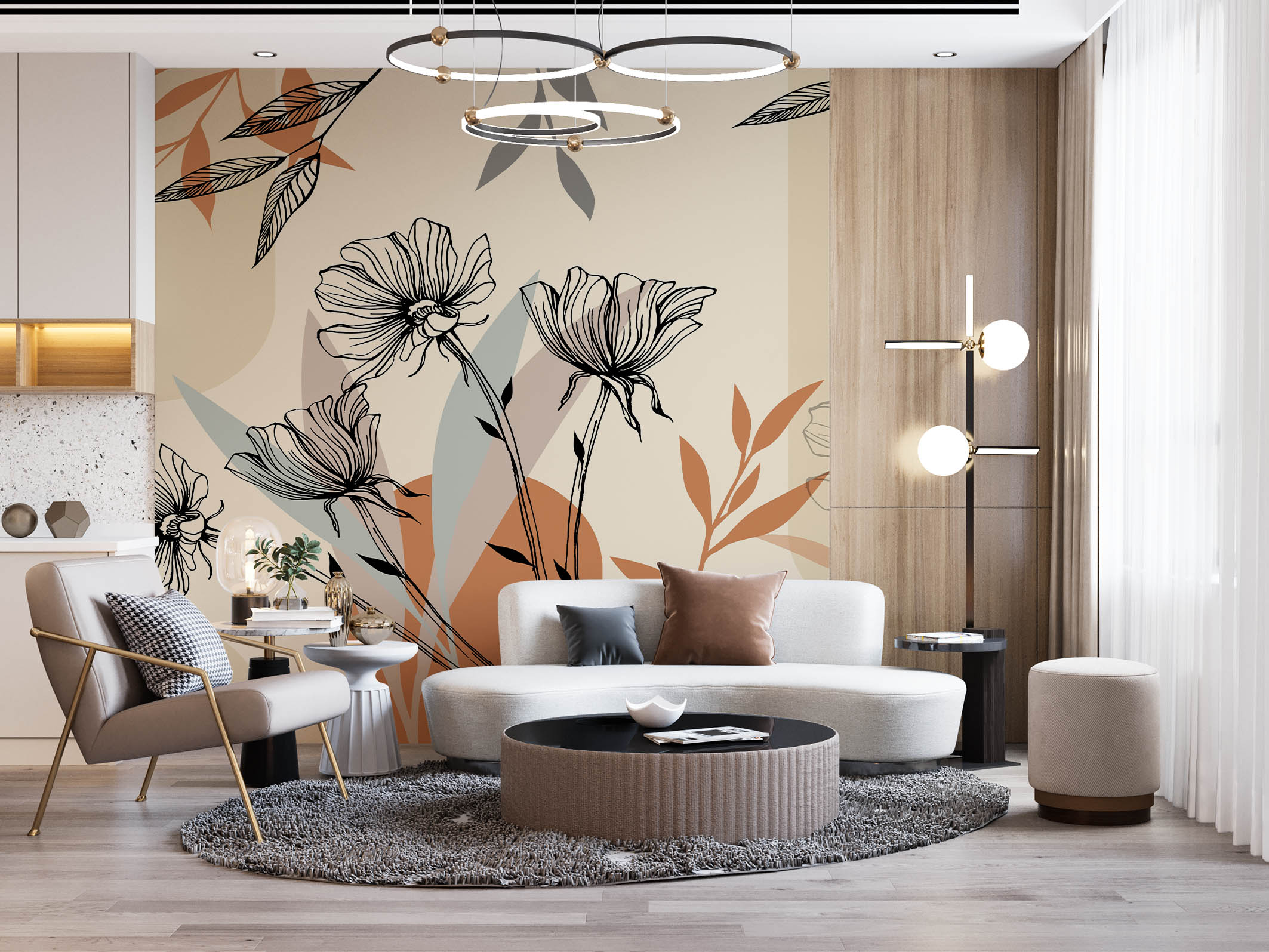 Oturma odası duvar kağıdı modeli Çiçekler ve Yapraklar