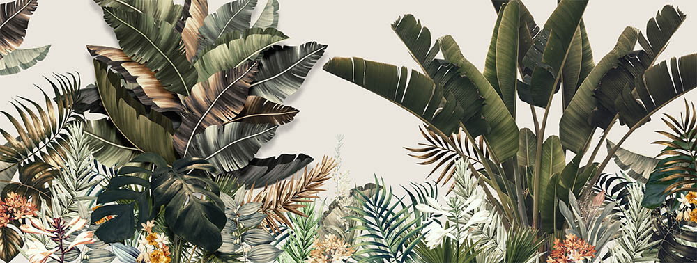 • Panoramik Tropikal Ağaçlar ve Yapraklar Özel Tasarım Duvar Kağıdı 3 boyutlu şekilde satın alın!
