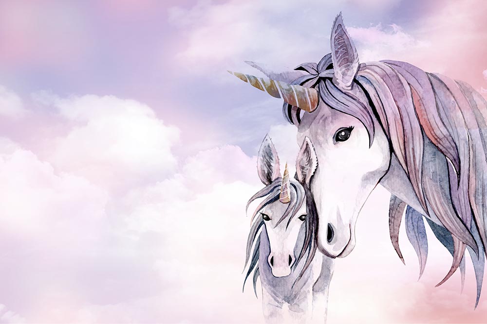 • Pembe Bulutlar Üzerinde Unicorn Çocuk Odası Duvar Kağıdı 3 boyutlu şekilde satın alın!