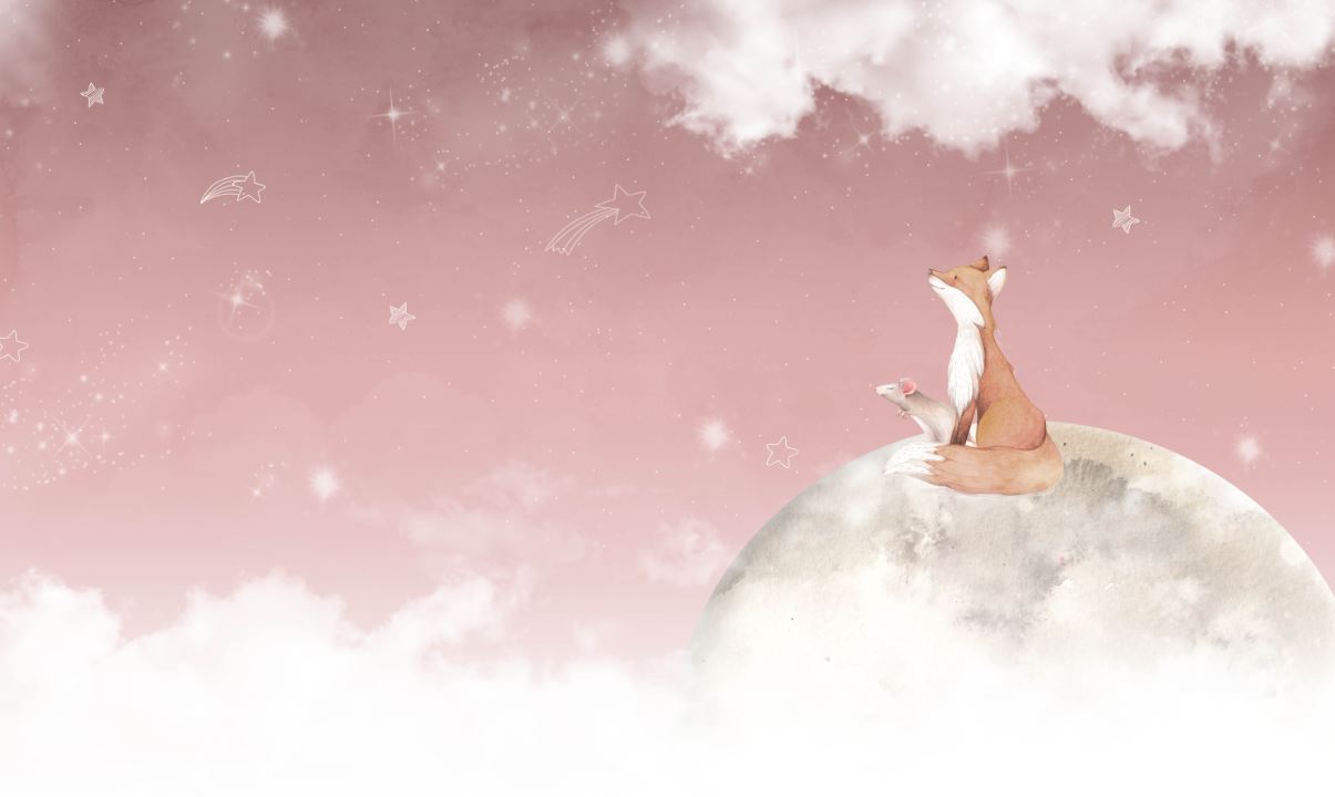 • Pembe Gökyüzü ve Ay üzerinde Sevimli Tilki Çocuk Odası Duvar Kağıdı 3 boyutlu şekilde satın alın!