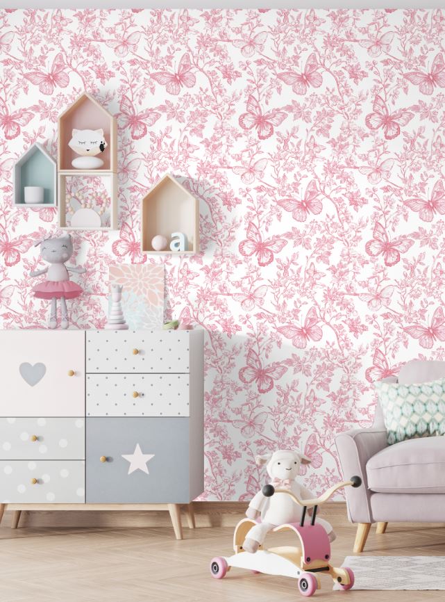 • Pembe Kelebekler ve Çiçekler Kız Çocuk Odası Duvar Kağıdı 3 boyutlu şekilde satın alın!