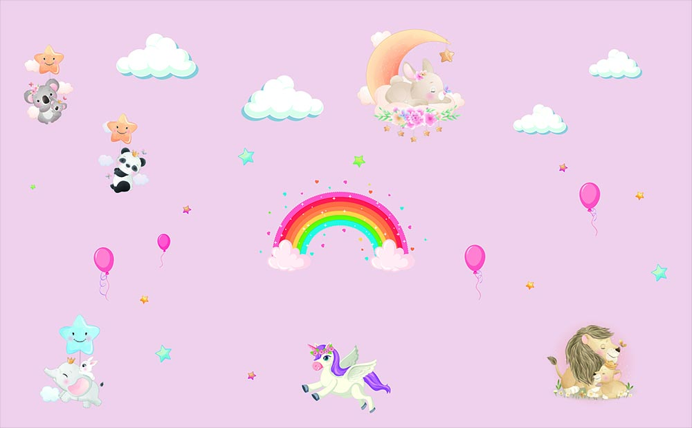 • Pembe Zemin Unicorn Kız Çocuk Odası Duvar Kağıdı 3 boyutlu şekilde satın alın!
