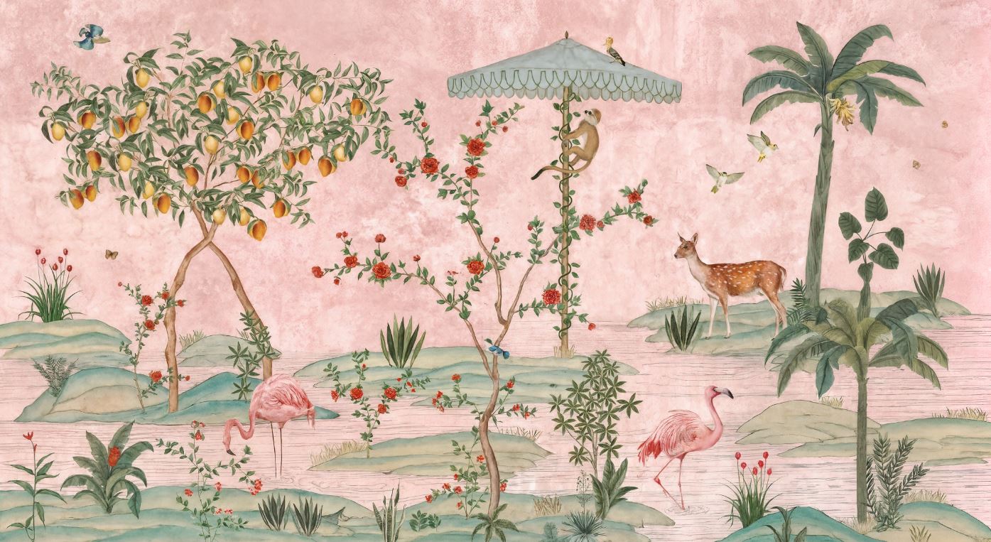 • Pembe Zemin üzerinde Yeşil Yapraklar ve Sevimli Hayvanlar, En son Trend Duvar Kağıtları 3 boyutlu şekilde satın alın!
