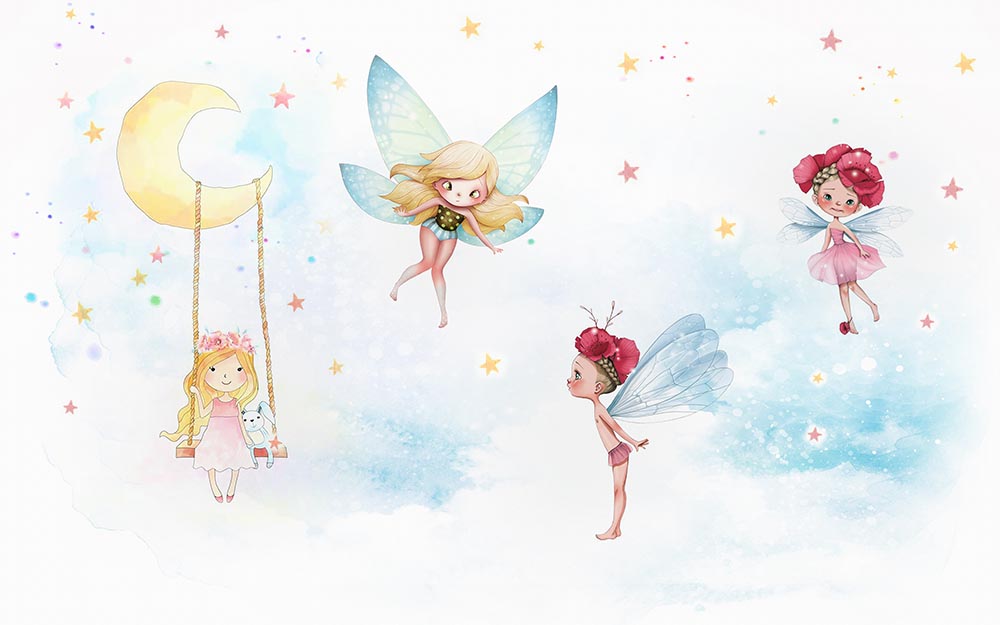 • Peri Kızlar Çocuk Odası Duvar Kağıdı 3 boyutlu şekilde satın alın!