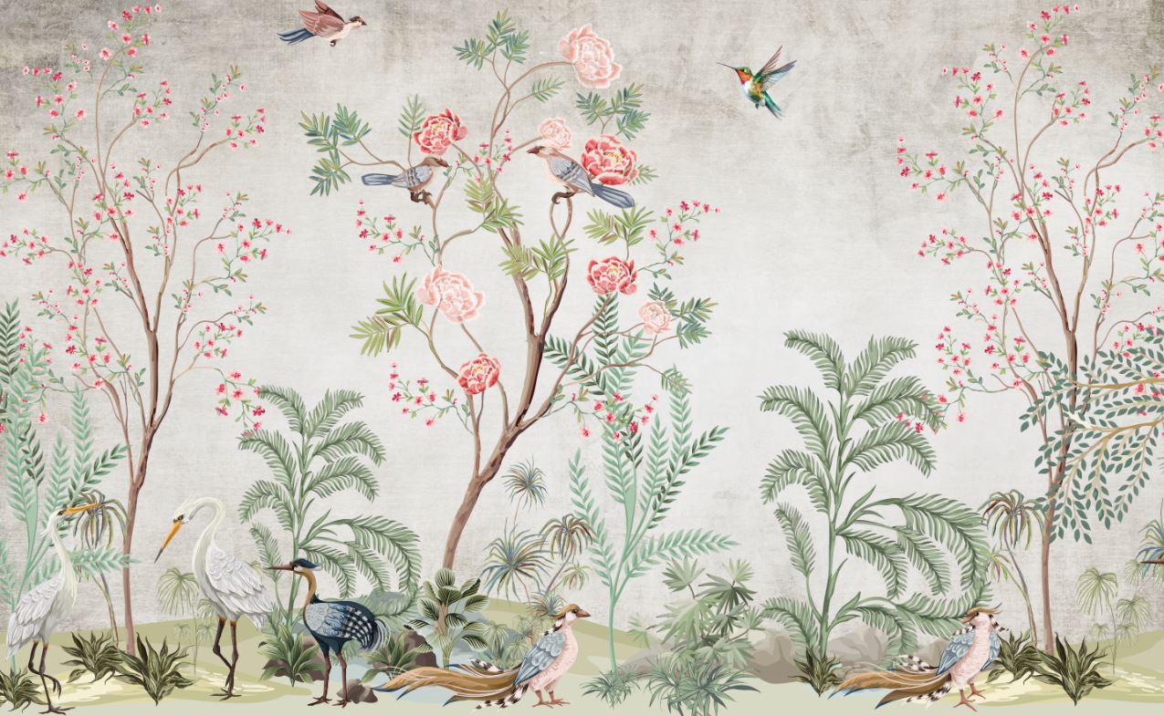 • Renkli Ağaç Dalları ve Çiçekler Tropikal Hayvanlar Duvar Kağıdı 3 boyutlu şekilde satın alın!