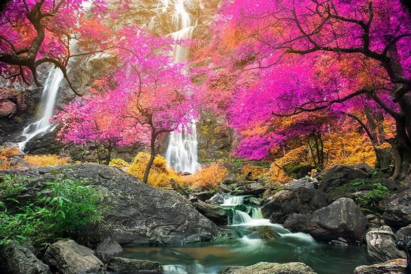 Renkli Ağaçlar Şelale Manzarası
