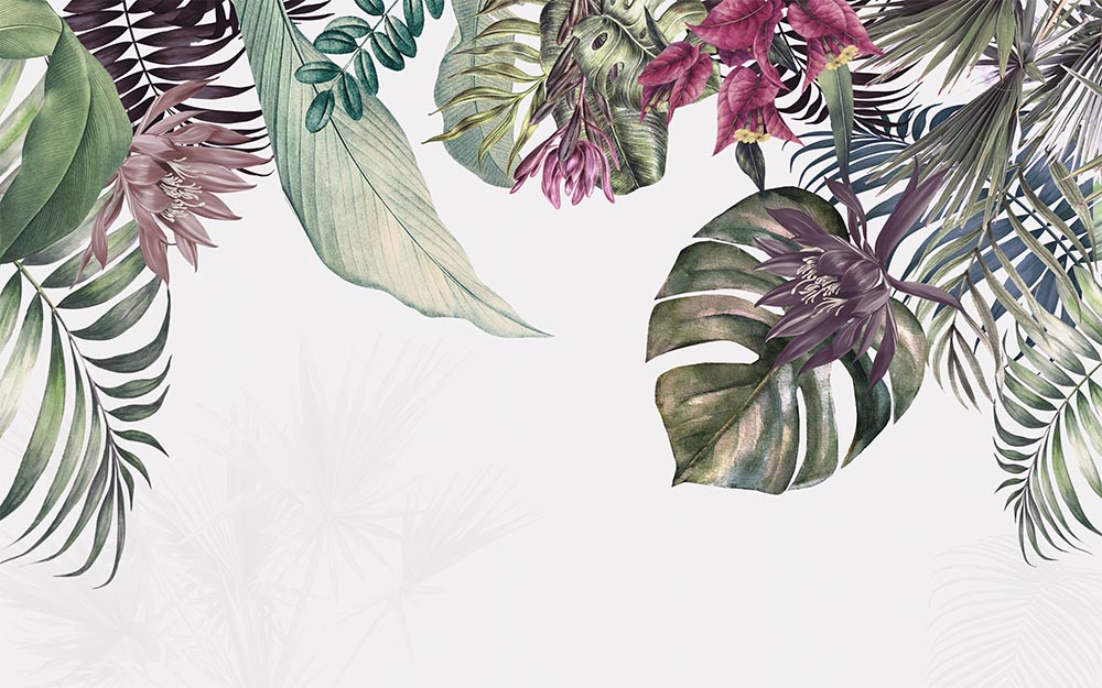 • Renkli Amazon Tropik Yapraklar Duvar Kağıdı 3 boyutlu şekilde satın alın!