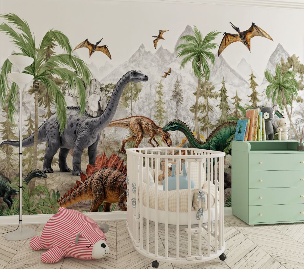 Renkli Dinozorlar Çocuk ve Kreş Duvar Kağıdı Tasarımı