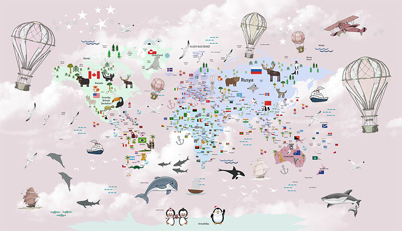 • Renkli Dünya Haritası Çocuk Odası Duvar Kağıdı 3 boyutlu şekilde satın alın!