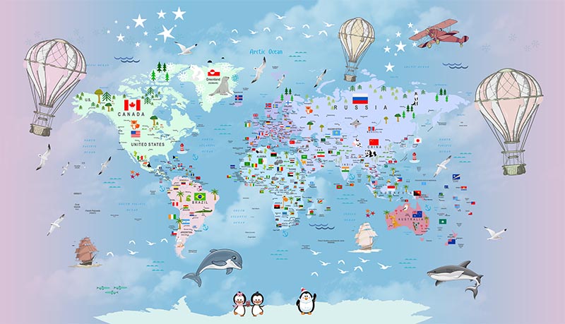 • Renkli Dünya Haritası Eğitici Çocuk Odası Duvar Kağıdı 3 boyutlu şekilde satın alın!