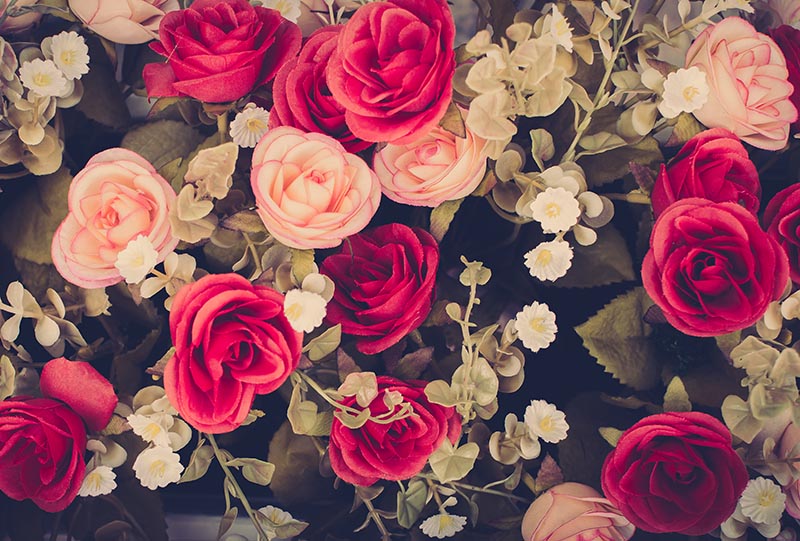 Renkli Güller ve Beyaz Çiçekler Duvar Kağıdı