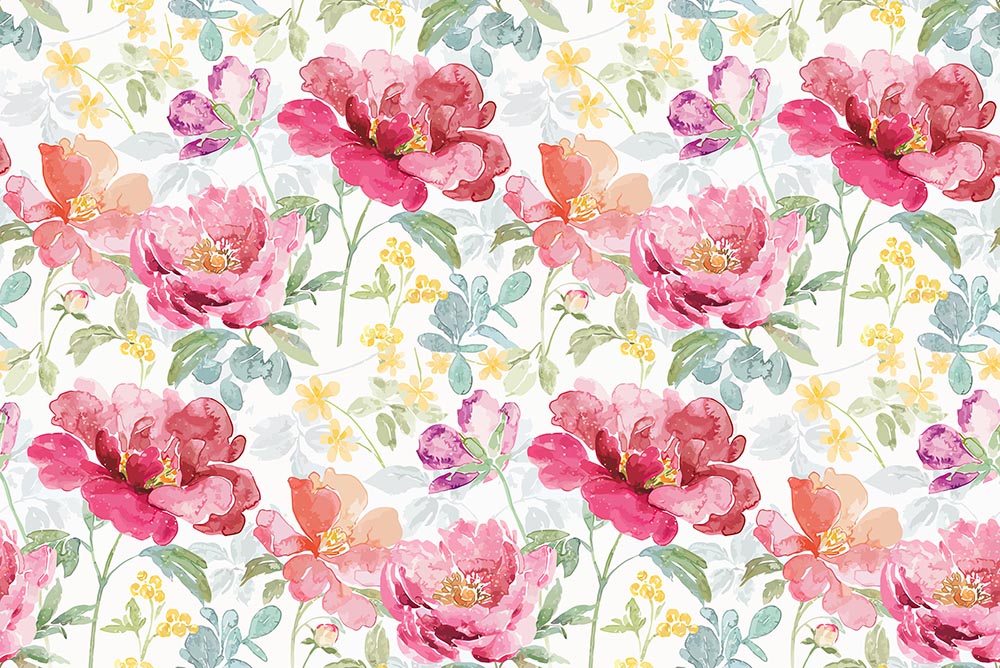• Renkli Sulu boya tarz Çiçekler duvar kağıdı 3 boyutlu şekilde satın alın!