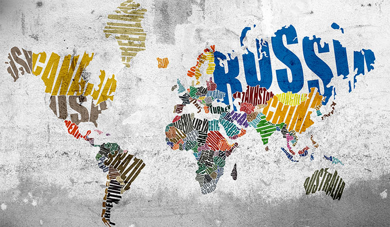 Renkli Ülke isimleri Yazılı Dünya Haritası