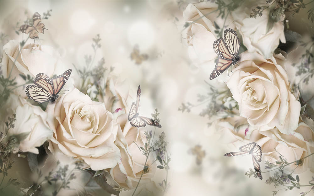 • Romantik Beyaz Güller Duvar Kağıdı 3 boyutlu şekilde satın alın!