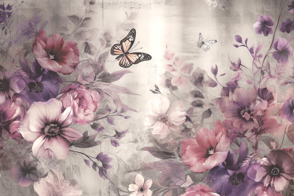 • Romantik Çiçekler Duvar Kağıdı - Renkli Çiçekler ve Yapraklar 3 boyutlu şekilde satın alın!