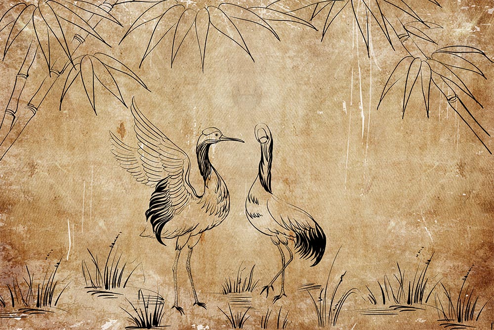 • Romantik Kuşlar Vintage Duvar Kağıdı 3 boyutlu şekilde satın alın!
