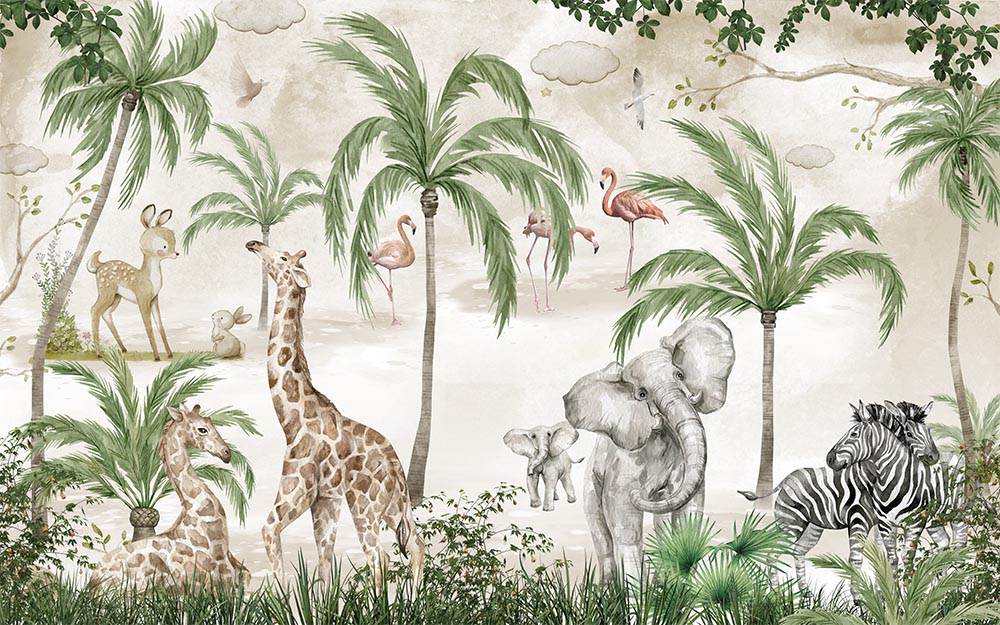 • Safari Hayvanları Duvar Kağıdı , Tropikal Safari Wallpaper 3 boyutlu şekilde satın alın!