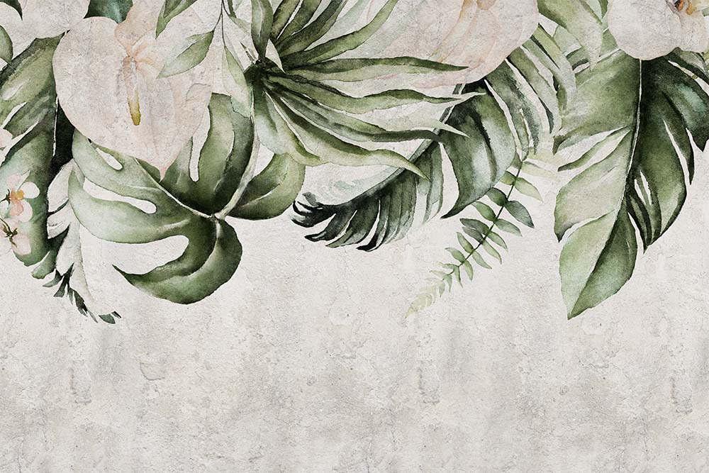 • Salon Duvar Kağıdı Büyük Yapraklar ve Çiçekler 3 boyutlu şekilde satın alın!