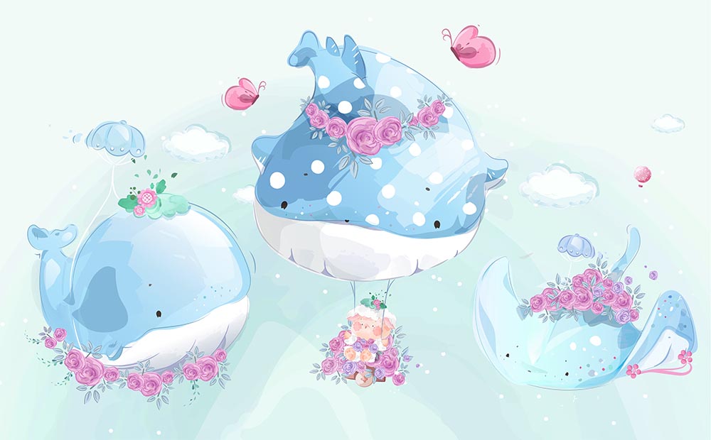 Sevimli Büyük Balıklar Çocuk Odası Duvar Kağıdı