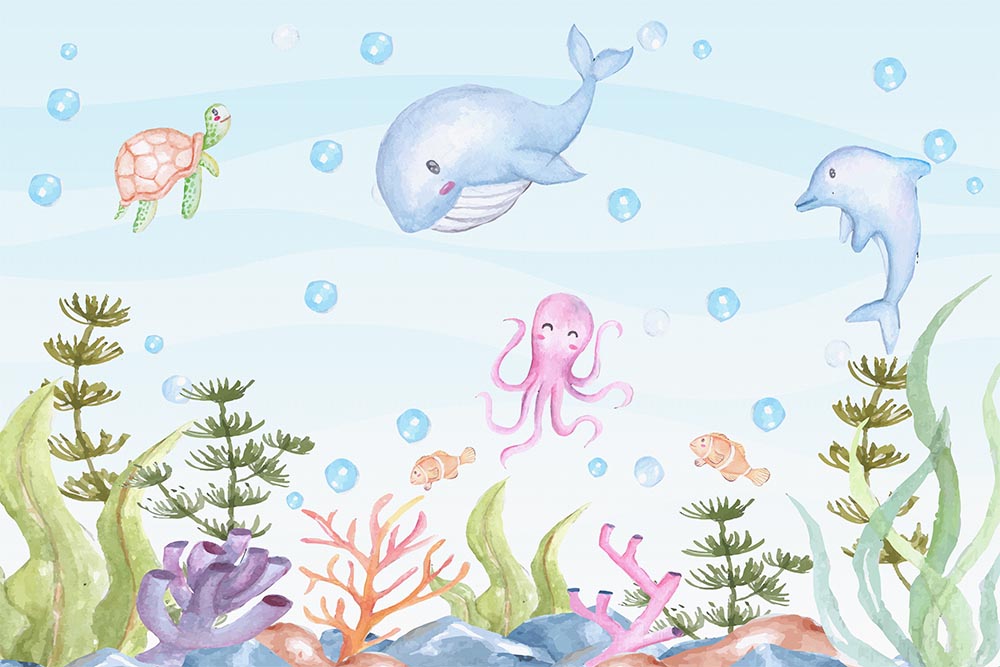 • Sevimli Deniz Canlıları Balıklar Çocuk Odası Duvar Kağıdı 3 boyutlu şekilde satın alın!