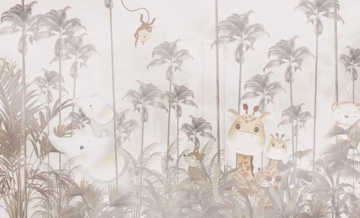 • Sevimli Safari Hayvanları Ağaçlar Arasında - Çocuk Odası Duvar Kağıdı 3 boyutlu şekilde satın alın!