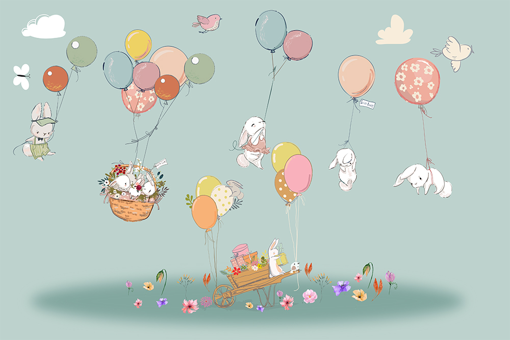 • Sevimli Tavşanlar Duvar Kağıdı 3 boyutlu şekilde satın alın!