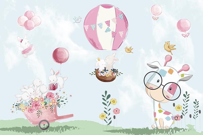 • Sevimli Tavşanlar ve Zürafa Çocuk Odası Duvar Kağıdı 3 boyutlu şekilde satın alın!