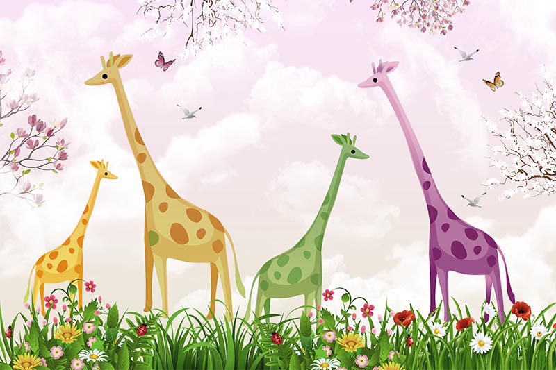 • Sevimli Zürafalar Duvar Kağıdı 3 boyutlu şekilde satın alın!