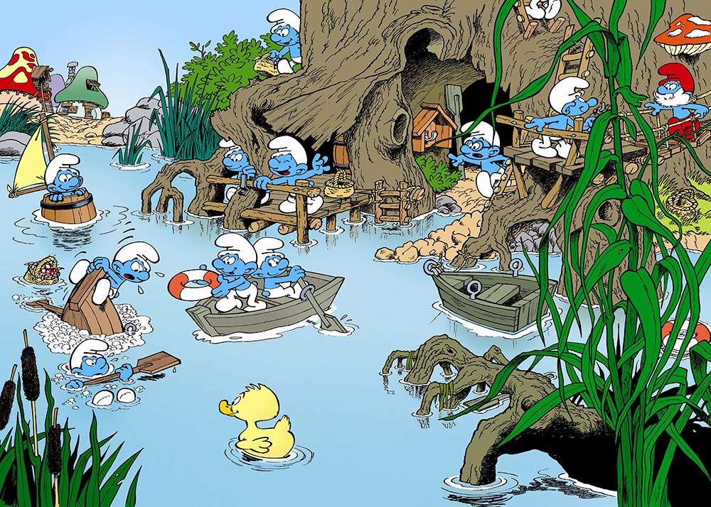 • Şirinlerin Mutlu Dünyası Çocuk Odası Duvar Kağıdı 3 boyutlu şekilde satın alın!