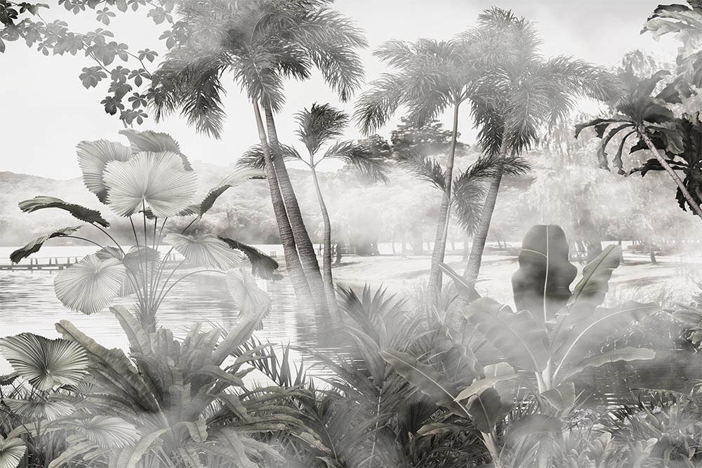 • Sisli Orman Manzarası Tropikal Ağaçlar Duvar Kağıdı 3 boyutlu şekilde satın alın!