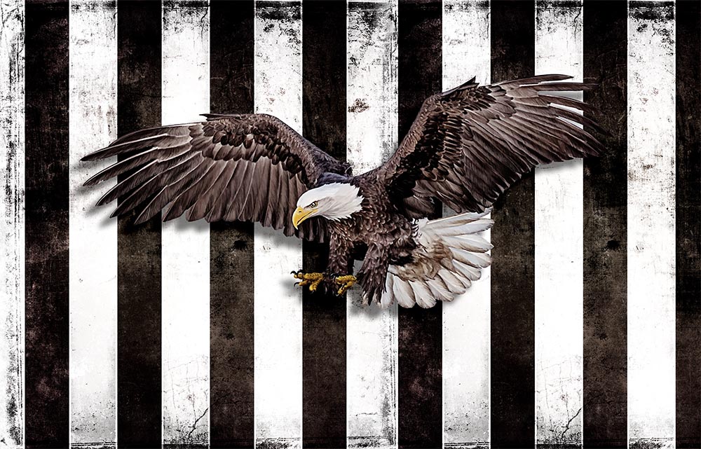 • Siyah Beyaz Çizgili Zemin Kara Kartal Taraftar Duvar Kağıdı 3 boyutlu şekilde satın alın!