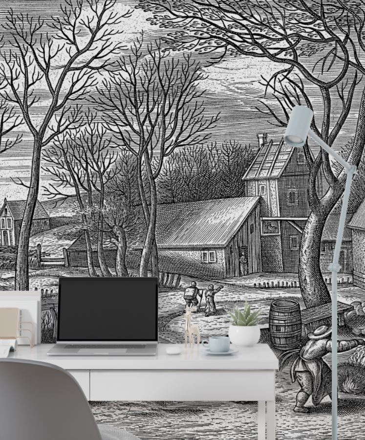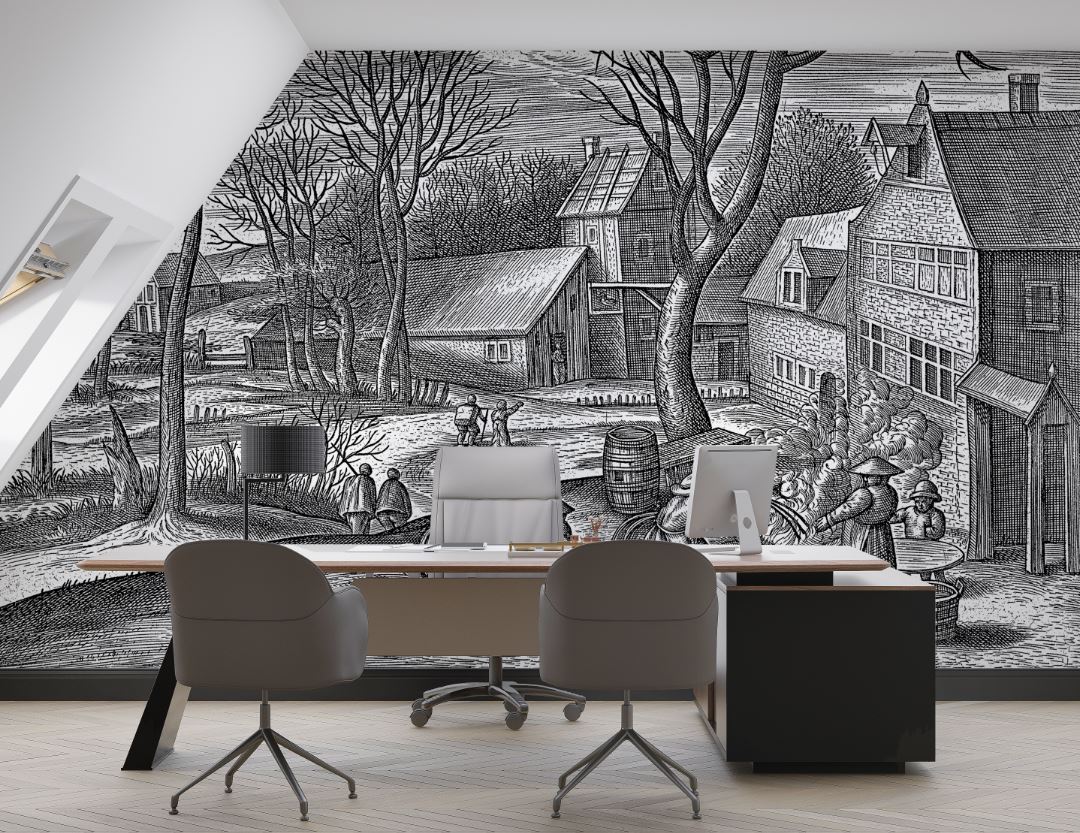 • Siyah Beyaz Karakalem Tarz Antik Duvar Kağıdı 3 boyutlu şekilde satın alın!