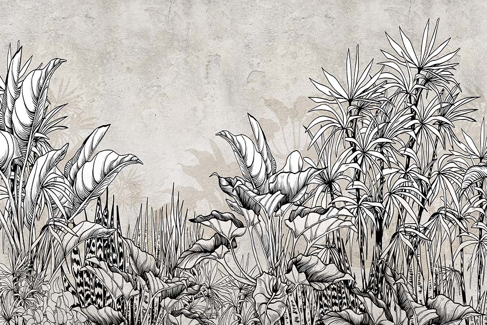 Siyah Beyaz Yapraklar Özel Tasarım Duvar Kağıdı