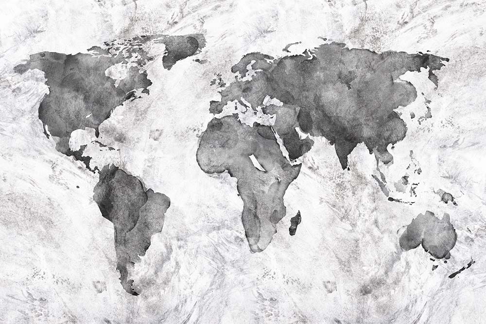 • Siyah - Gri - Beyaz Dünya Haritası Duvar Kağıdı 3 boyutlu şekilde satın alın!