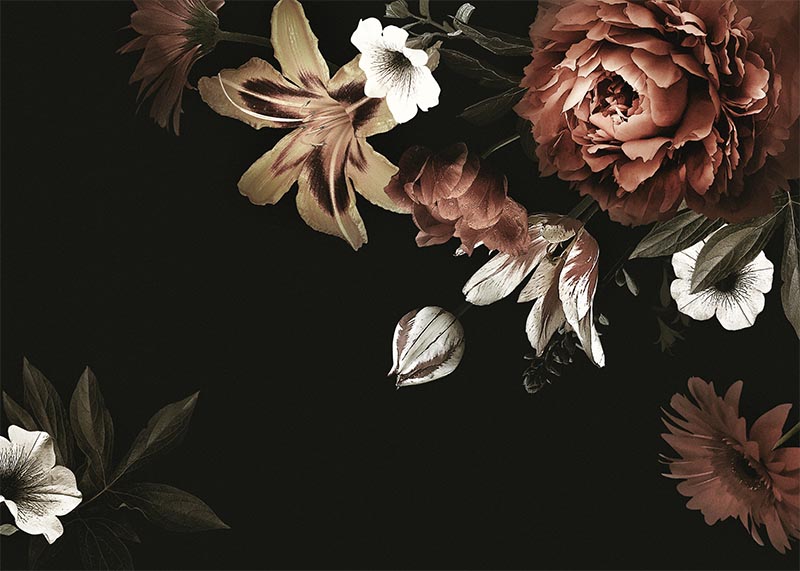 Siyah Zemin Çiçekler Duvar Kağıdı