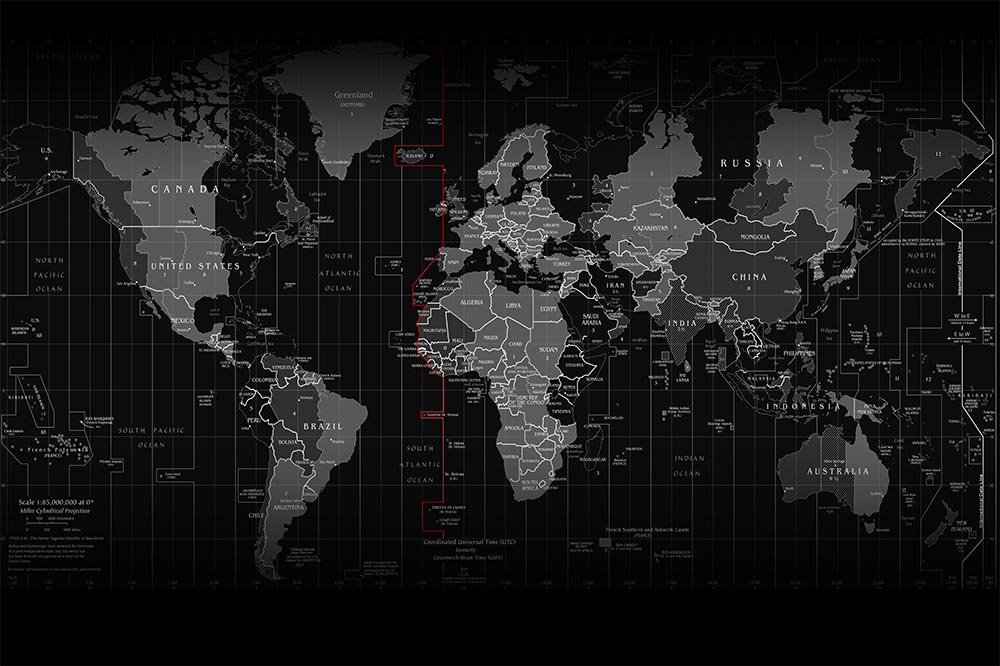 • Siyah Zemin Üzerinde Dünya Haritası Duvar Kağıdı 3 boyutlu şekilde satın alın!
