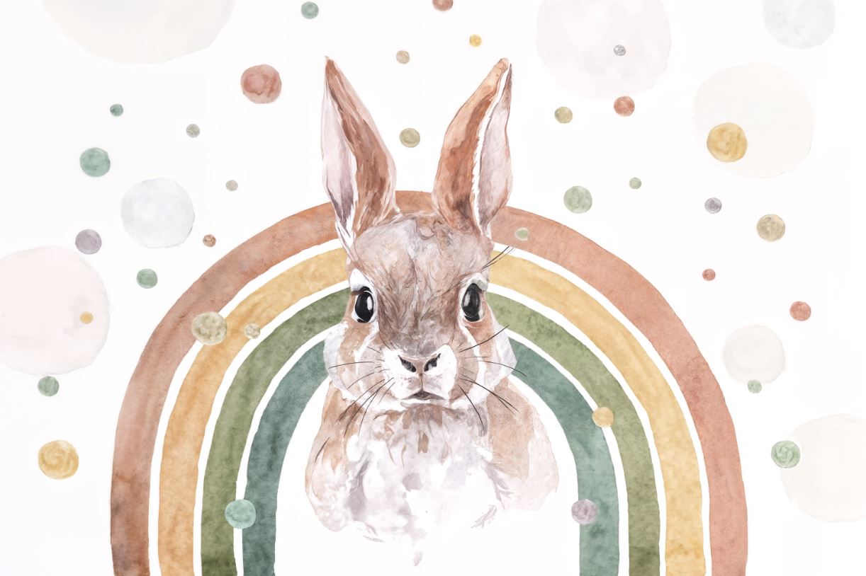 • Soft renk gökkuşağı içerisinde Büyük sevimli Tavşan Duvar Kağıdı 3 boyutlu şekilde satın alın!